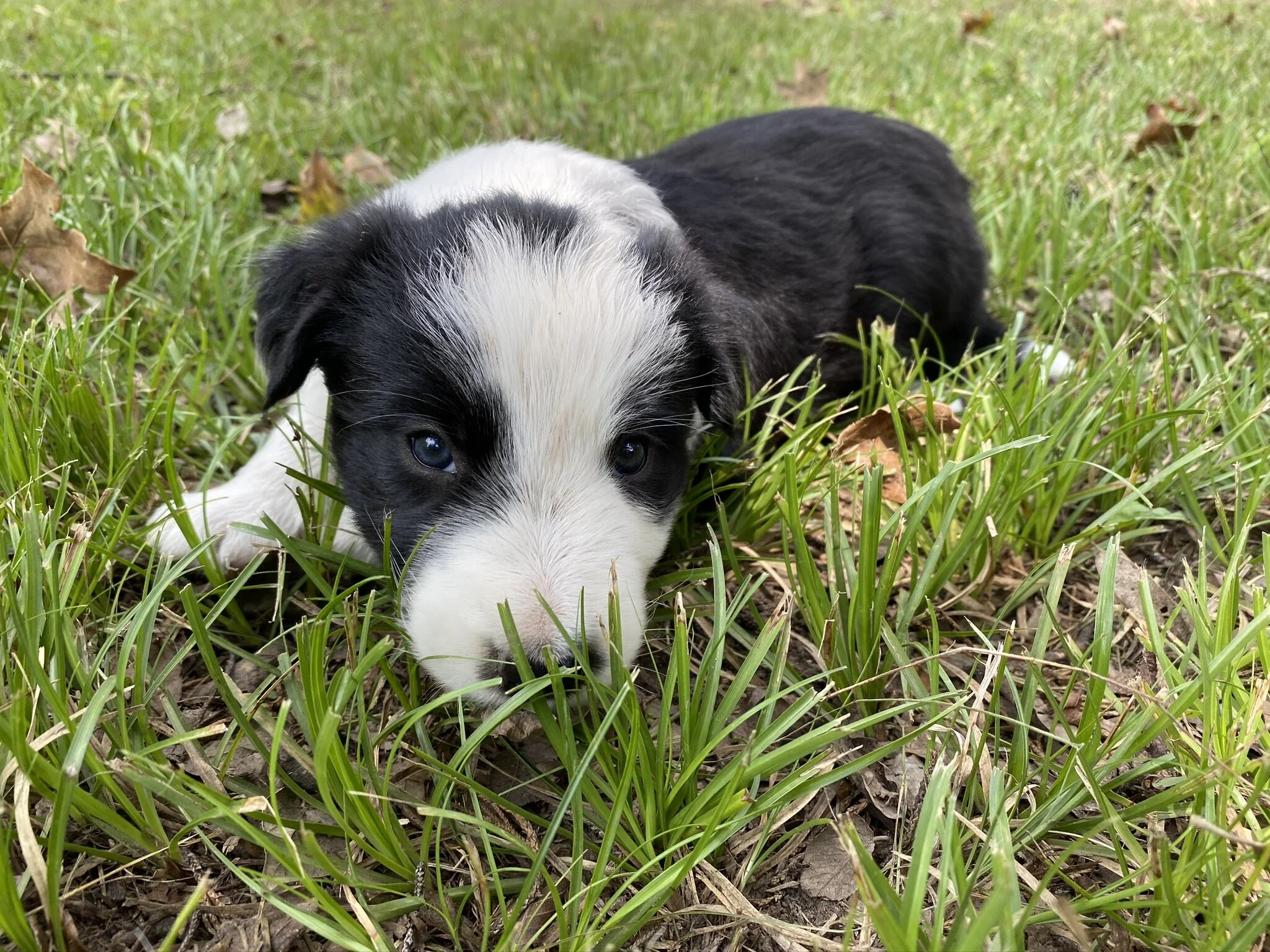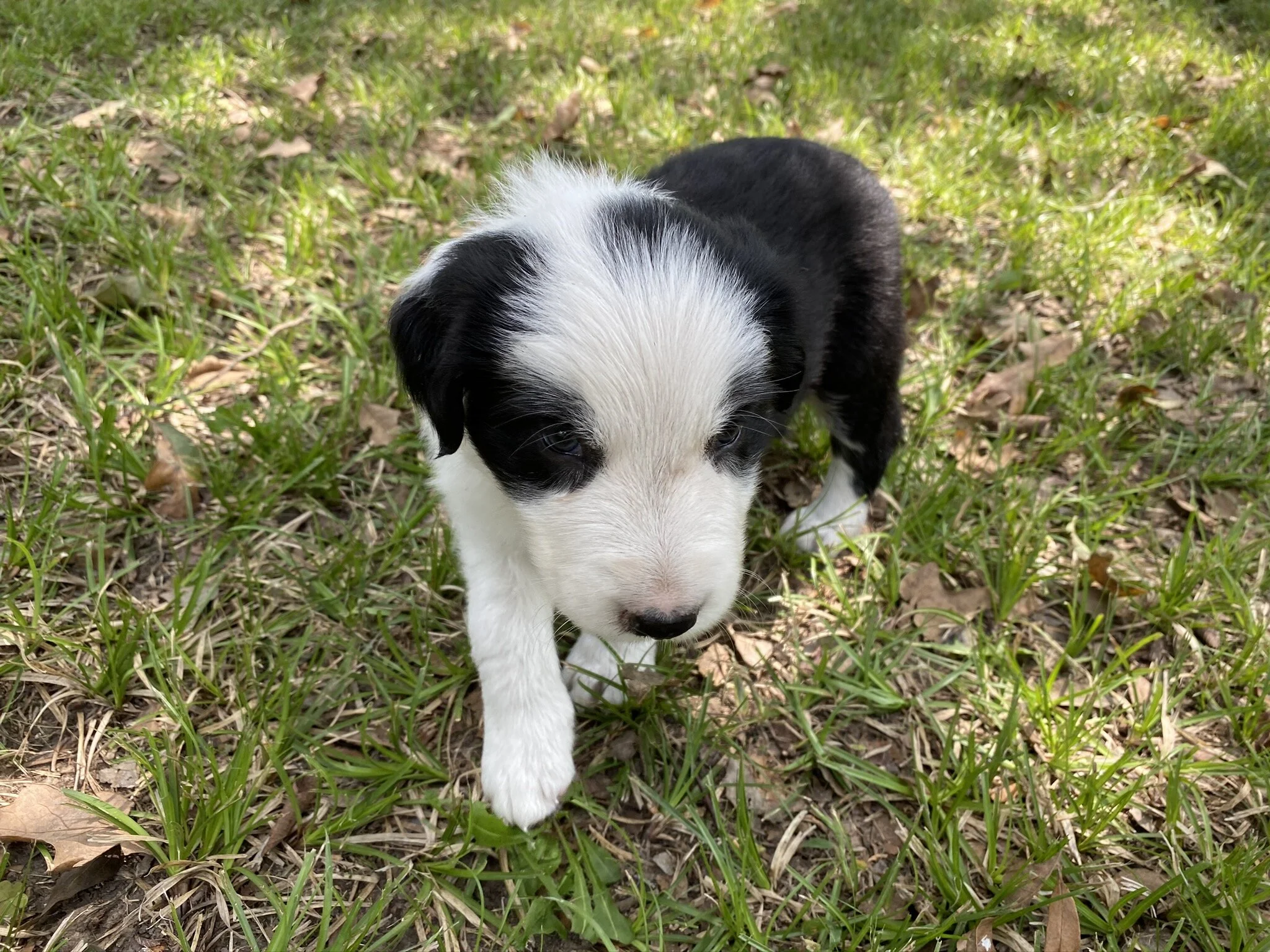 Blue is the father to Tippet’s puppies above and Gypsies puppies below. He is a purebred standard black and white border collie with one blue eye.